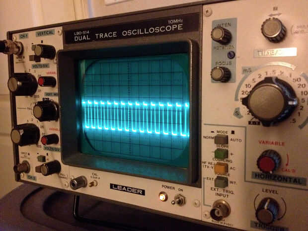 p.d. me gustaría decir que calcula los valores necesarios para el filtro de paso bajo con 1/(2piRC) pero yo simplemente al azar probados lo que funcionó hasta los satisfechos (resistencia de 560 ohm y 3pF cap)