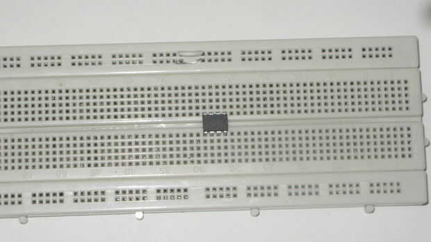 IC555 es el cerebro de su circuito controla todo, empezamos por colocar en el centro de la mesa de pan