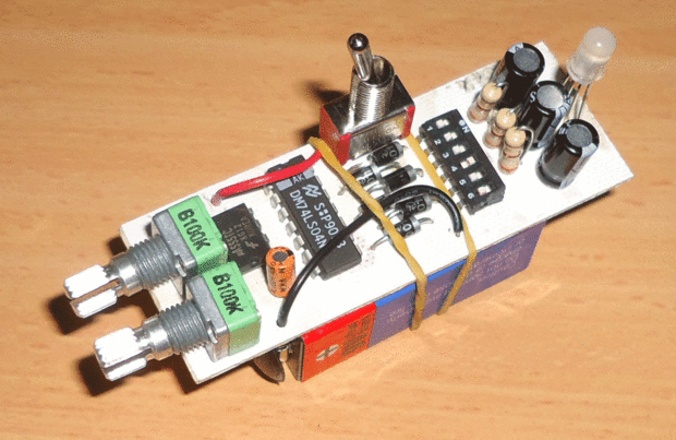 Oh, y antes de que olvide, el temporizador triple cinco tiene una mínimo de alimentación de 5 volts. Así que cualquier configuración de fuente de alimentación debe tener al menos 5 volts, no funciona tres voltios. Es realmente muy ergonómico para sujetar en la mano con la batería de nueve voltios donde es.