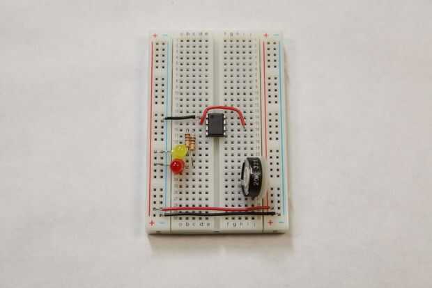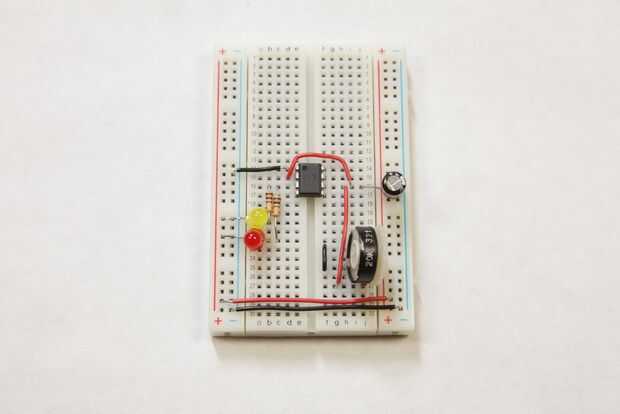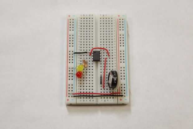 aquí está el diagrama del circuito.!Paso 1: Componentes necesarios 1) 2 led de diferentes colores2) condensador de 100uf3) 555 temporizador ic4) cablesbatería de 9v de 5)6) conector de la batería7) resistencia de ohmios k 1 18) resistencia de ohmios