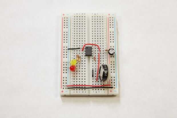 aquí está el diagrama del circuito.!Paso 1: Componentes necesarios 1) 2 led de diferentes colores2) condensador de 100uf3) 555 temporizador ic4) cablesbatería de 9v de 5)6) conector de la batería7) resistencia de ohmios k 1 18) resistencia de ohmios
