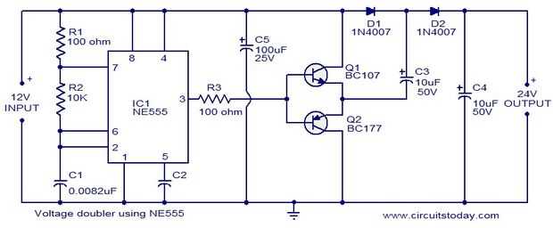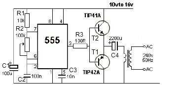 siempre quiere jugar con algunos voltios más fuerte utilizando componentes estándar en su choza de la radio local? Muy bien este circuito viene directamente desde el sitio web http://www.555-timer-circuits.com/ y simplificado a un protoboard. Yo soy