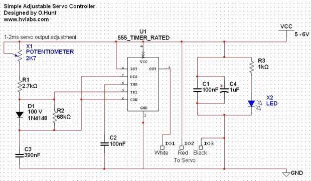 este instructable ofrece un paseo a través de un conductor servo básica usando un 555 resistores de la viruta 5 IC un transistor y 2 condensadores. La idea es simple, usar 2 interruptores para controlar el movimiento del servo. Observe que este circ