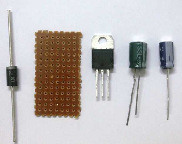 circuito de regulador de voltios de 5v que puede hacerse de sólo tres componentes, su forma simple, barata y fácil para obtener una corriente de hasta 1A y una tensión de más de 5v puede ser regulado sólo por este circuito, este circuito puede ser ut