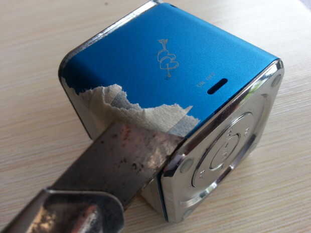 Usando el cortador y se deslice en los bordes de los bordes y hacer un hueco lo suficientemente grande para el dedo de uñas para hacer el trabajo