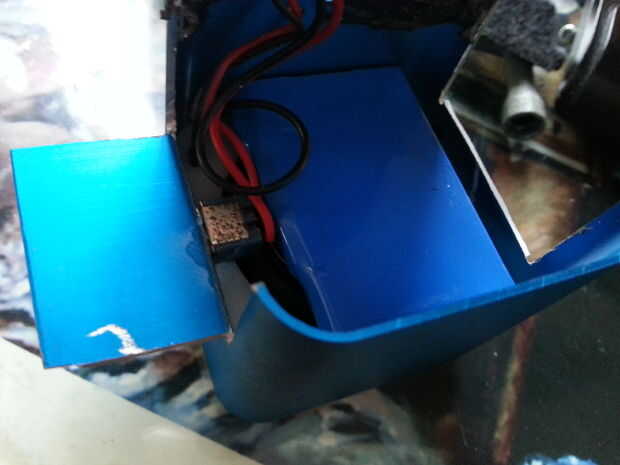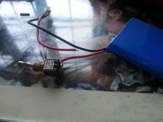 Vuelva a colocar los altavoces y encontrar una manera de poner su interruptor y pila. Taladre un orificio adecuado para su conmutador y luego soldar el interruptor en la batería