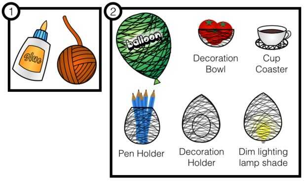 Utilizando cuerdas y cola blanca normal, usted puede hacer varios tipos de decoración u otros productos útiles! Es fácil de hacer, lo que es un gran proyecto para los niños, pero todavía es muy decorativa!