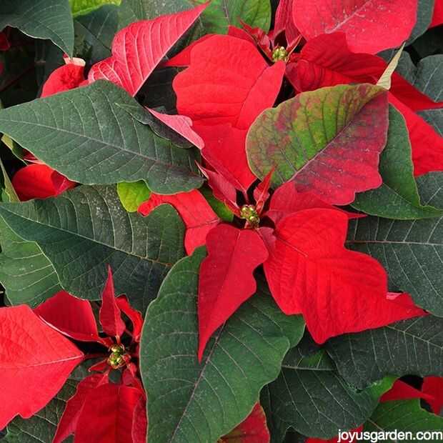 Como se puede ver, algunas de las hojas (brácteas) de color giren y las plantas serán en ajuar completo para la temporada de Navidad. Las pequeñas flores amarillas en el centro no han abierto todavía.