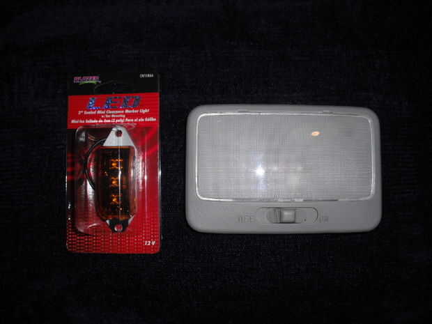 este instructable podría dar algunas ideas de cómo usted puede utilizar barato, fuera de la plataforma, luces de LED para convertir su coche, barco o RV, sistema de iluminación de interiores. Por unos $5 USD, usted puede comprar lista para usar luz de LED de 12V. Empecé con un marcador lateral ámbar claro, que incluyó tres ámbar brillante LED en un listo utilizar el dispositivo. Luz interior de mis diez años Suzuki/de Chevy había sido en el fritz durante casi un año. Cambio de la lámpara no funcionaba; el pwb de retardo de tiempo (demostrado más adelante) era malo, así que tuve una buena excusa para hacer la conversión de LED. La luz completa es realmente agradable. La luz ámbar es fácil en los ojos, y sin embargo, hay un montón de luz para llenar la cabina del coche.