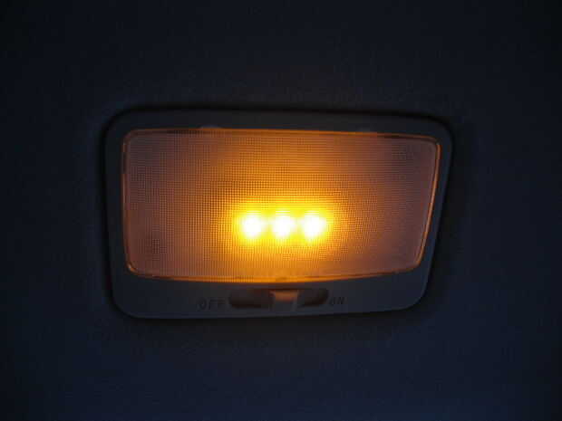 En realidad, este fue un trabajo fácil.  Tomó más tiempo para hacer de este instructable que hizo para hacer el proyecto.  Esta foto fue sin flash y aunque los tres LEDs parecen ser puntos separados de la luz, la salida real de luz es muy uniforme y más que suficiente a los efectos de iluminación el coche de interior por la noche.  La luz ámbar es agradable a los ojos.