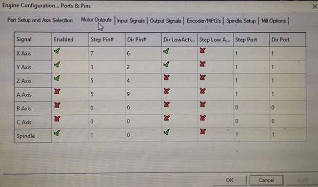 Salidas son relativamente fáciles ya que sus números representan el número establecido en Mach3 como salida.
