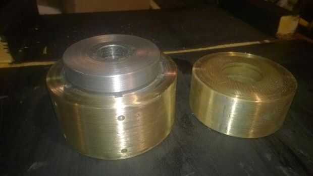 Uno de los beneficios secundarios de conocer personas con tiendas de máquina es le dan sobras y basura... Pude utilizar una dona de bronce enorme 15lb, así como las vísceras del otro gran motor para utilizar como contrapesos. Yo junte equipada todo y empujó en mi taladro. Alguna presentación y lijado y tienen contrapesos de bronce impresionante.