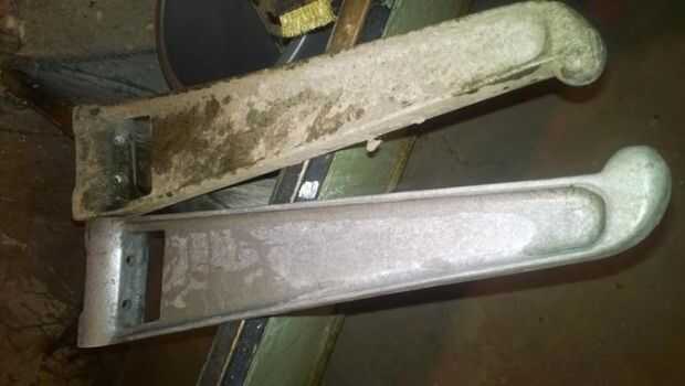 Las patas del pedestal que utilicé fueron de la original 6" construcción que me dieron para este proyecto. Ellos habían sido enterrados durante décadas algún lugar que le gustaba los gatos. La primera orden del día fue limpiar y desengrasar las piernas así que olían a metal y nada más.