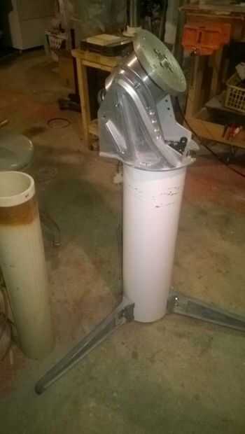 Las piernas del perno simplemente a un tubo de otro ámbito. El tubo es el diámetro de 7" x 2" de largo pero es de paredes delgadas y se reemplazará por algo más rígido en una fecha posterior. La cabeza del Monte se encuentra en una placa que salió otro montaje de alcance (un montaje de la horquilla de C8) que sucedió a la ID de mi tubo exactamente. Añadí a algunos espaciadores y funcionó una varilla roscada de 1/2" de los pies a la cabeza de montaje para unir todo.