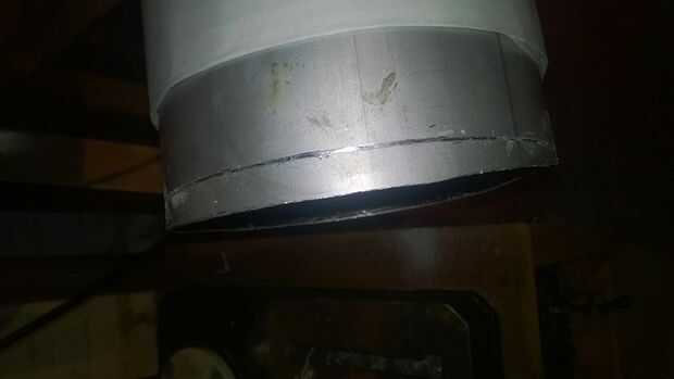El primer paso fue a enderezar y cuadrada de los extremos del tubo. Tengo un taller en mi sótano pero no soy un comerciante experto. Tengo algunas herramientas de banco, pero sobre todo de la mano herramientas y perseverancia. Estos días encontrará una tienda de máquina o un amigo con un chopsaw y Plaza el tubo en un par de segundos. Me gusta este método sin embargo... Tomar una tira larga de papel (yo uso un rollo de papel de estraza) y envolver el tubo que dos veces alrededor. Alinee los bordes del papel y usted tendrá una línea perfectamente cuadrada para corte de. Luego usar una abrazadera para guiar la sierra alrededor. Comienza por cortar un surco una vez alrededor, luego siga con corte un canal alrededor hasta que se rompe a través de. Esta técnica da su cubo un extremo cuadrado que es mejor que cualquier chopsaw con poco acabado requerido!