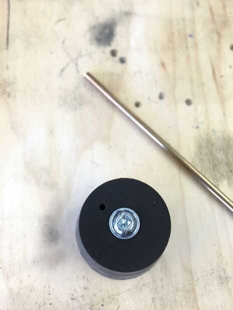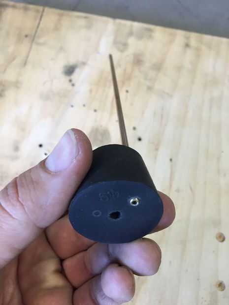 Hacer una herramienta aburrida: arena, archivo o moler el extremo del tubo cortada para que sea sostenido alrededor del borde. Enroscar el tapón hasta una pieza de madera para que quede ajustada pero sin comprimir el tapón (no quieres distorsión. Chuck el tubo en una prensa del taladro y agujero en el tapón. Pulse 6" tubo en el agujero de nuevo para un sello hermético.