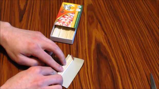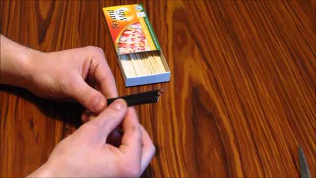 Para hacer estos arrancadores de fuego inteligente necesita conducto cinta y partidos. Prefiero a más partidos. Coloque a un cerillo en el borde de un pedazo de cinta adhesiva. Asegúrese de que está asomando la cabeza de fósforo. Coloque segundo partido junto a él, pero un paso inferior. luego coloque en tercer lugar un paso inferior. 4 partidos deberían ser suficiente. Una vez que plegar la cinta y envolver a fósforos para que queden planas. Sólo primera cabeza de fósforo debe sobresalen de iniciador de fuego. El resto de partidos se encenderá en la reacción en cadena una vez que se enciende. Encenderá la cinta del conducto. QUEMADURAS DE CINTA DE CONDUCTO MUY BIEN.