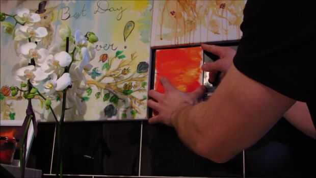 Para colgar cuadros en una pared usando cinta adhesiva, necesita pegar pedazo de cinta adhesiva al revés a sí mismo por lo que cinta adhesiva doble. Luego pega un lado y a su imagen y otra a la pared. :)