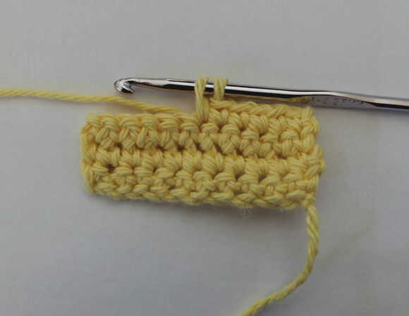 Igual que en punto bajo, excepto tracción a través de tres lazos en lugar de dos, luego hilo sobre hilo de tracción a través de dos lazos en el gancho, lazo de extracción del segundo color a través de los últimos dos lazos en el gancho. A partir de ahí mantener ganchillo normalmente con su nuevo color.