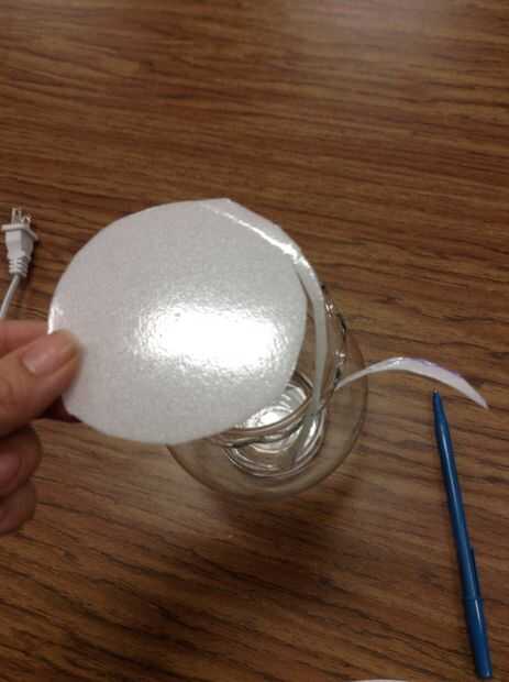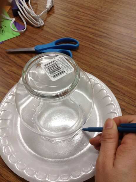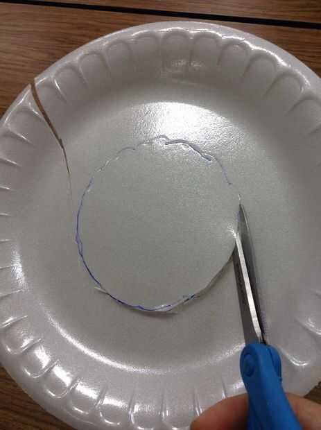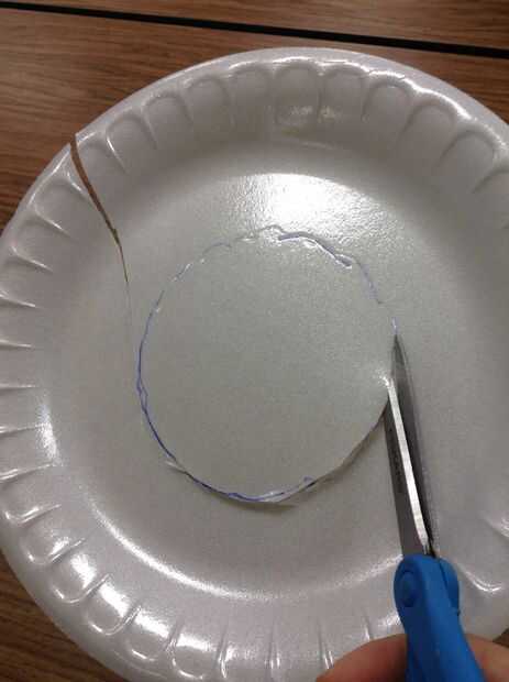 Usando una placa de espuma de poliestireno y la base de su pequeña pecera, rastrear el fondo de la pecera con un lápiz. A continuación, utilice tijeras para cortar el círculo que acaba de trazar.