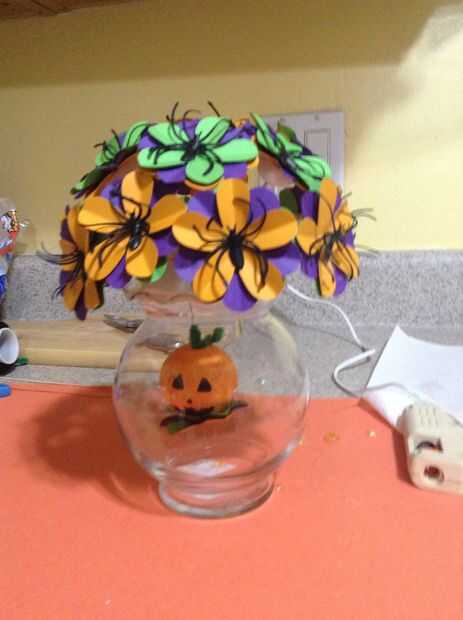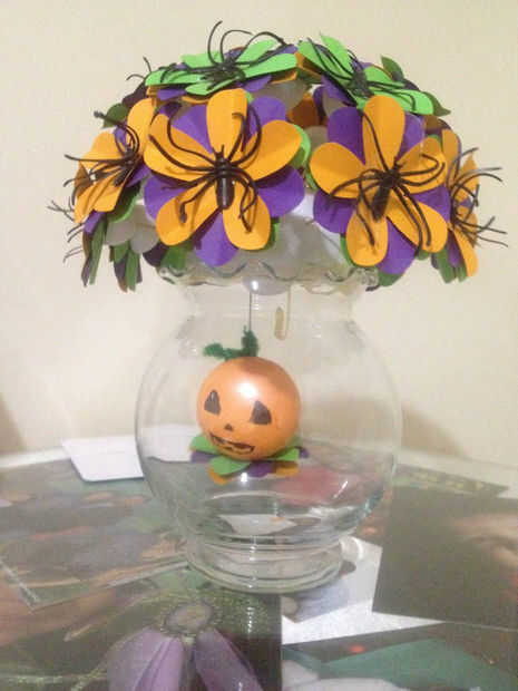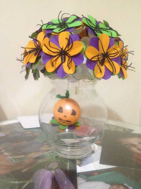 Pegue una araña de plástico en el centro de cada flor.