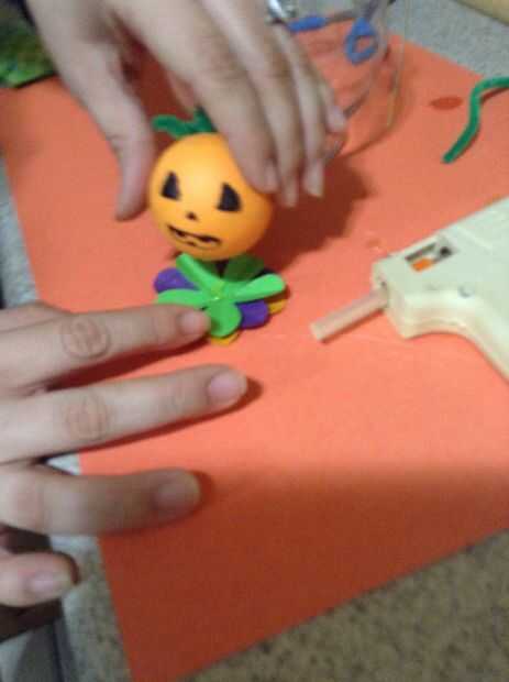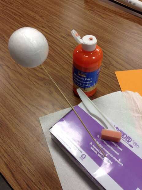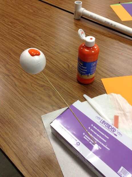 Utilizando un pedazo delgado de colgar de hilo Jack-O-linterna de la placa de espuma de poliestireno como se muestra en las fotos.