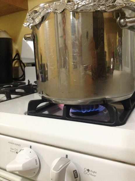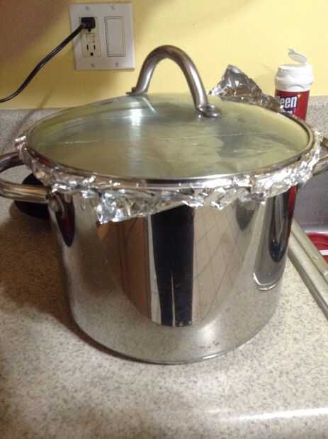 Olvide completamente cubrir las patatas con la salsa, el bote con papel de aluminio y la cubierta del sello.