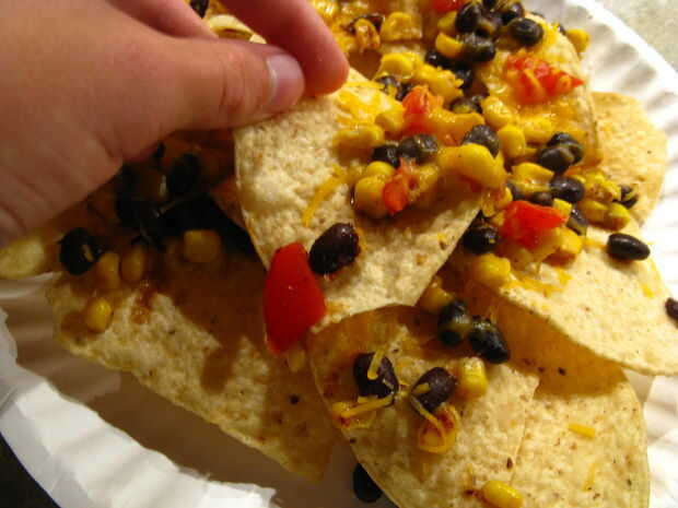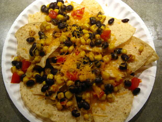 Para los nachos poner algunas virutas de la tortilla en un plato (duh!:) y mi salsa y un poco de queso en la parte superior. Ponerlos en el microondas durante 30 segundos y eran tan buenos! No está mal para unos 10 minutos de trabajo! Ahora tengo la salsa hecha para hacerlos realmente rápido a hacer! ¡Que te diviertas! :)