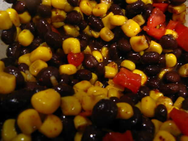 Bueno, mientras escribo esta frase es 12:19 aquí en Louisville, y tuve un poco de hambre. Así que hice algunas salsa de frijol negro. Yum! La salsa era sólo cuatro ingredientes: