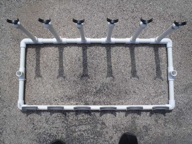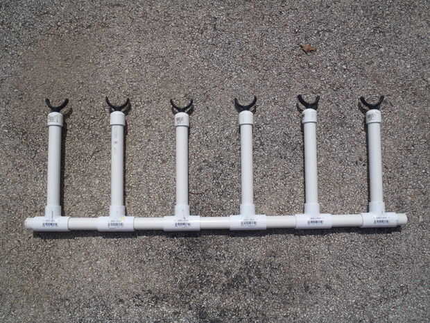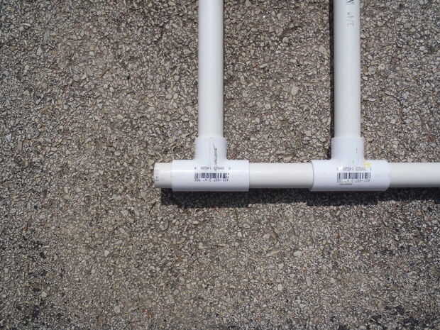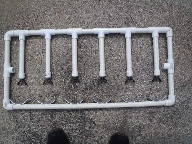 A partir de un 7/8 de 1 piezas de tubo de conectar un conector T entonces un trozo de tubo de 4 pulgadas y continuar hasta finalmente terminar con la última pieza de conexión al último conector T del tubo de 1 7/8. En las fotos ves pedazos de cañón vertical entonces titular allí pero se pegan en y no podía tomar hacia fuera para la foto. Voy a describir cómo hacer en la siguiente sección.