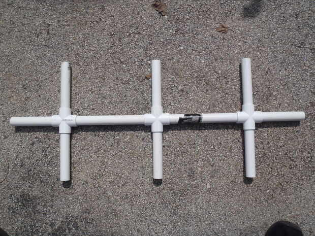 Attact (2) 8 1/2 pulgadas piezas de tubería a las cruces y colocar las últimas piezas cruzadas en el centro de los.