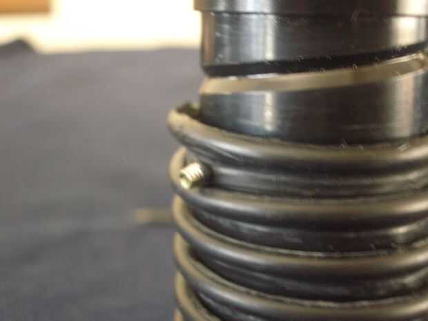 Si tu lente no tiene surcos espirales, y se utiliza una manguera espiral, puede Agregar un tornillo fuera de su objetivo (la parte que está dentro de la manguera) y también permite giro centrado.