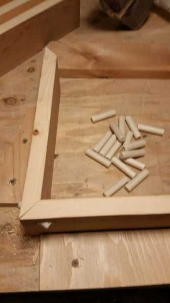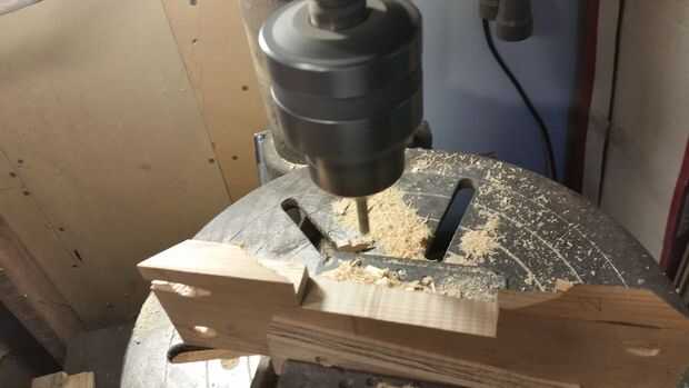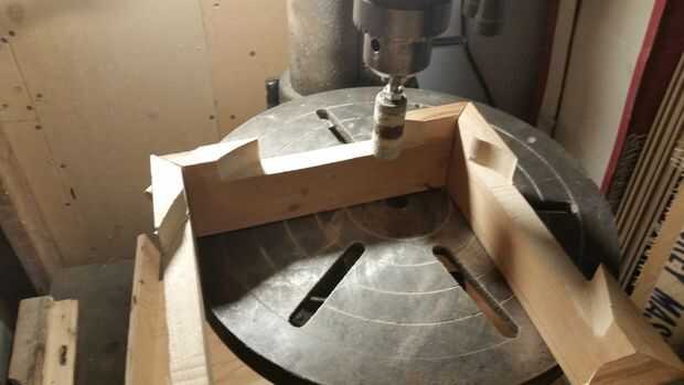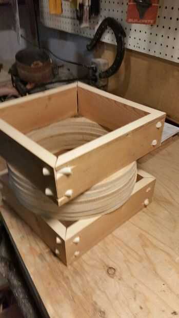 Arrancó un 1 x 6 por la mitad y cortar 8 piezas de 2 3/4 "× 9 1/2" largo y corta los extremos en 45°. Cortar 16 2" largos tacos perforaron las esquinas y seco todo encajan. Luego coloque un anillo en la caja y traza su diámetro exterior. Con mi sierra y taladro con sumir la broca de fresadora y lijadora corte y forma el diámetro 3/4" de grosor para que el anillo se convertiría sin problemas en el corte del tambor. Número de las esquinas por lo que es más fácil ponerlos detrás juntos otra vez
