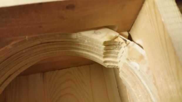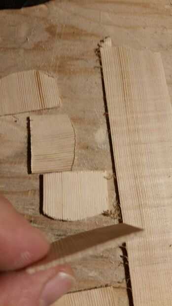 Sujetan los anillos juntos y usados mi alternativa Sierra para cortar la ranura para la cerradura. Esto habría sido más fácil y más limpio si había cortado cuando primero hice los anillos antes de que pegan los cut-ins. Me corte las piezas laterales 3" de largo, 2" de alto y cortar las esquinas en 45 º. También cortar la parte de atrás de los lados para que no interfieran con los anillos y había pegado a la parte inferior solamente. Quería los anillos tan juntos como sea posible, así que con mi lijadora de cinta y cinturón hice cuñas de 1 × 1 1/2 × 1/16" espesor. Yo utilizar mi herramienta para cortar ranuras en los lados de las cuñas, había pegado en y los anillos.