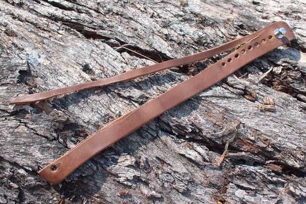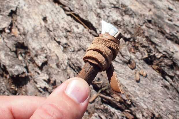 Utilice su fragmento de vidrio para cortar una tira continua larga de cuero de la correa de reloj, esto se usará para el fragmento de cristal a un mango del latigazo. Para hacer un mango de encontrar a un palillo con una abertura en un extremo, luego insertar el fragmento de cristal a la asentada firmemente en la abertura y latigazo firmemente con la tira de cuero.