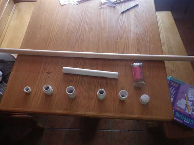 1" ¼" x 48" pasador de madera 12" PVC tubo- ¾ "x ½" PVC buje * Adaptador macho de PVC de 1" Acoplamiento de PVC de 1" Adaptador macho de PVC de 1 "x ¾" Adaptador hembra PVC de 1 "x ¾" Tapa de 1" PVC