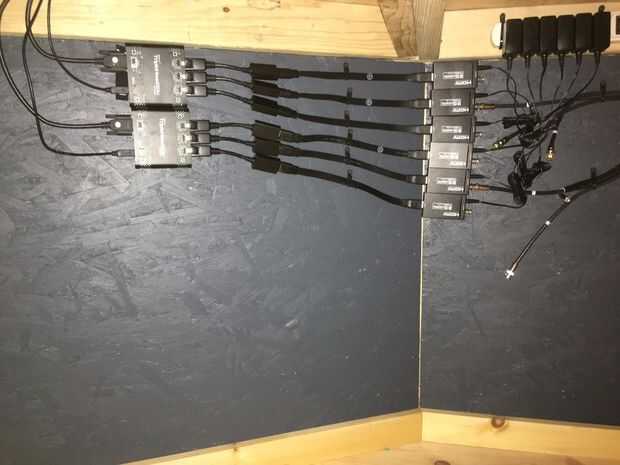 Aquí es la parte, un trabajo de loco para obtener señal en tantas pantallas de iMac.