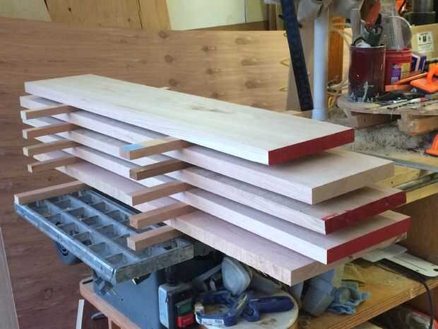 Empecé con 5/4 roble bruto. Todas las piezas eran articuladas y planificadas hasta 1" de espesor. Corte de piezas a 4" y corte en 36" x 4 fr delantero y trasero delantal carriles. Corte dos piezas más a 4" y corte a 7" para los carriles cortos. Luego configurar su sierra a 2" y extraer algunas piezas para los rieles inferiores de moldeo. Dimensiones son las mismas que el anterior pero se necesita una pieza más corta, en total 3. Punta * siempre configuro mi mesa Sierra de corte transversal patín con un bloque de tope y cortar todas las piezas a la vez para garantizar que son todos iguales. Ahorra un montón de problemas a largo plazo. Última pieza será una 2 1/2" pieza 7" largo que actuará como un soporte medio entre rieles delantal pero nunca se verá así que siéntase libre de usar cualquier pieza de stock. Hacer una pieza adicional de cada uno de los mdf que se utilizará como una plantilla más adelante.