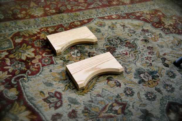 Una vez haya hecho traslado de plantillas a su delantal real rieles. Traza la forma de la curva en tus prendas y corte de sierra. Asegurarse y dejar línea. cuando todas las piezas se cortan Coloque las plantillas con tornillos o cinta de doble cara. Usando un 1 "flush trim bit y un router mesa o mano celebrado router ejecute el rodamiento a lo largo de la parte de la plantilla y que hará una copia exacta de la pieza. Repita para todas las piezas curvadas.