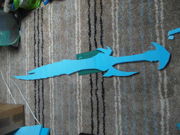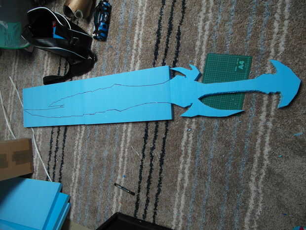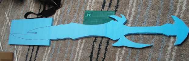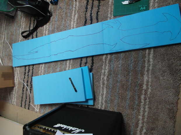 Coloque la plantilla de papel sobre la espuma y traza alrededor de él con un rotulador, entonces puede eliminar la plantilla de papel! Tiempo para cortar la espuma! La espuma que usé era muy dura y he conseguido hacer yo con mi cuchillo mientras hacerlo tenga cuidado de verdad!!! :P
