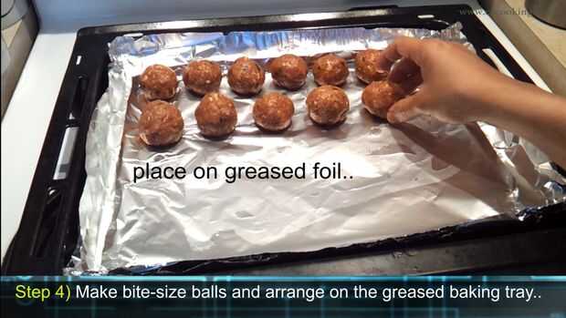 Paso 4) Hacer bolas del tamaño de un bocado de picar y colocar en la bandeja para hornear engrasada.