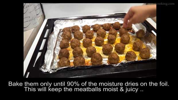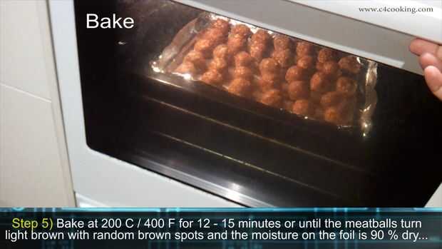 Paso 5) Hornear a 200 C/400 F de 12-15 minutos o hasta que las albóndigas marrón claro con manchas al azar y la humedad la hoja es de 90% seco.