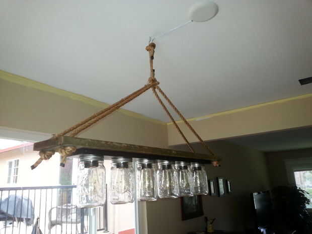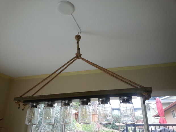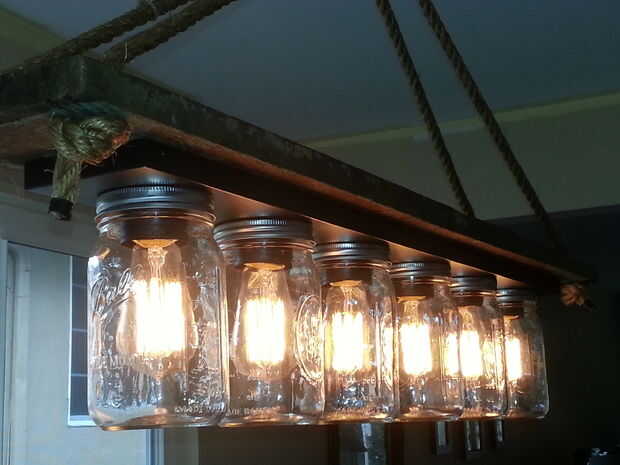 Vi algo en el internet un tiempo atrás donde alguien había hecho un masón con luz colgante tarros de un tocador barato y pensé algo similar sería gran sobre nuestra mesa.