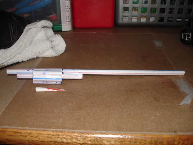 trata de cómo hacer una pistola de aire que es un solo tiro (dispara 1 dardos) que utiliza la acción de la bomba y se parece a una Escopeta dispara sobre dos veces tan lejos mi cerbatana que he hecho (la puede encontrar en este sitio) que está a unos