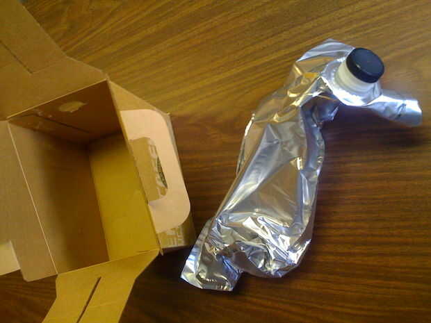 Si usted adquirió su caja de café a través de los canales tradicionales (es decir: comprado en el Starbucks local por $12) entonces probablemente todavía habrá una bolsa de plata de joe dentro. Abrir la caja, tire la bolsa hacia fuera y coloque en el reciclaje. También, antes de hacer nada más, coge su pedazo de papel de cartulina y coloca sobre la superficie de trabajo. ¡ No queremos marcas de pista en nuestra mesa ahora hacemos!