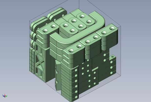 Más se añadirán a este paso, tan pronto como hay progreso en este frente. Por ahora, ver las fotos de mi impresión sugerida. Dejé un espacio de al menos 0,5 mm entre los componentes para evitar que se peguen entre sí. Todavía tiene que generar un archivo STL final, pero lo hará en el momento en que es necesario. Estoy pensando en publicar los archivos de diseño como construida después realmente armar una máquina yo.