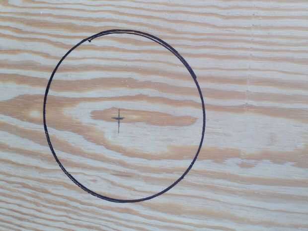 Coloque la punta del tornillo sobre la marca se bosquejó en el tablero y gire la pluma alrededor para crear el ciclo de 6".