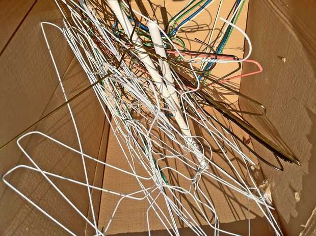 Los hangares de la gota en la caja de cartón.  Que la gravedad tirar de ellos, no es necesario forzarlos.   Asegúrese de que ninguno de los hangares pierda la caja.  Si lo hacen, recogerlas y colocarlas en la caja.