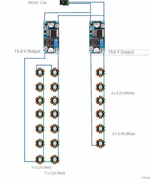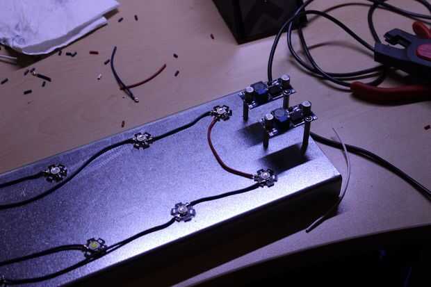 un asequible LED crece ligera para operación de red.Paso 1: concepto Con la disponibilidad actual de ambos mayor poder blanco LED y baratos convertidores DC a DC, ahora es posible construir tus propio crece las luces LED que puede ser alimentadas dir