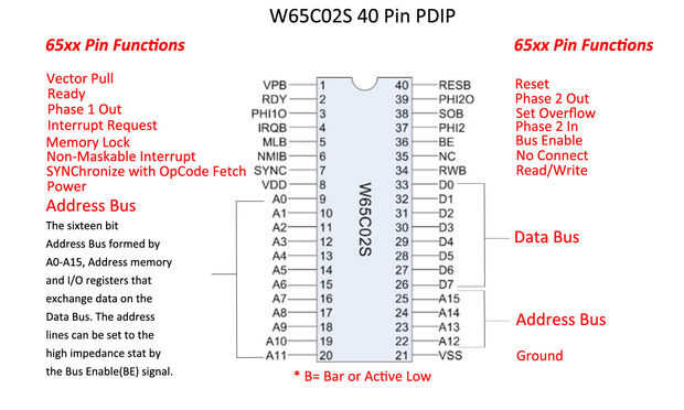 Este diagrama muestra las funciones básicas pin para el W65C02S.